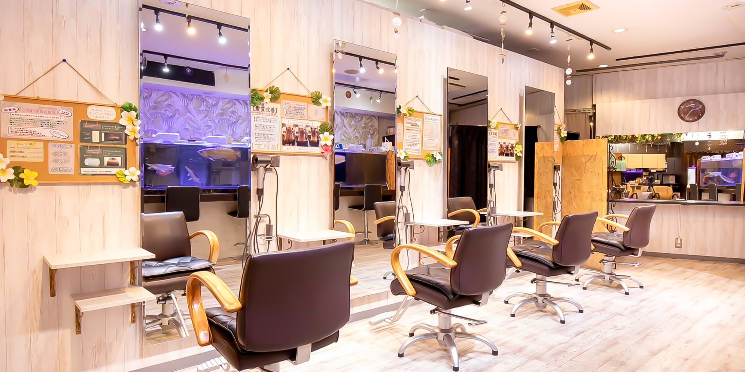 キャリア10年以上の実力派スタイリストが揃う当サロンでは、一流メーカーの薬剤を使用し、髪へのダメージを最小限に抑えた施術をご提供。丁寧なカウンセリングで理想のイメージを共有し、あなた自身も気づいていない魅力を引き出します。店内には7mの大型水槽があり、アロワナやエイなどの古代魚が泳ぐ癒し空間も魅力。カラーやパーマの待ち時間には25種から選べるドリンクサービス付き。ぜひ一度ご相談ください。